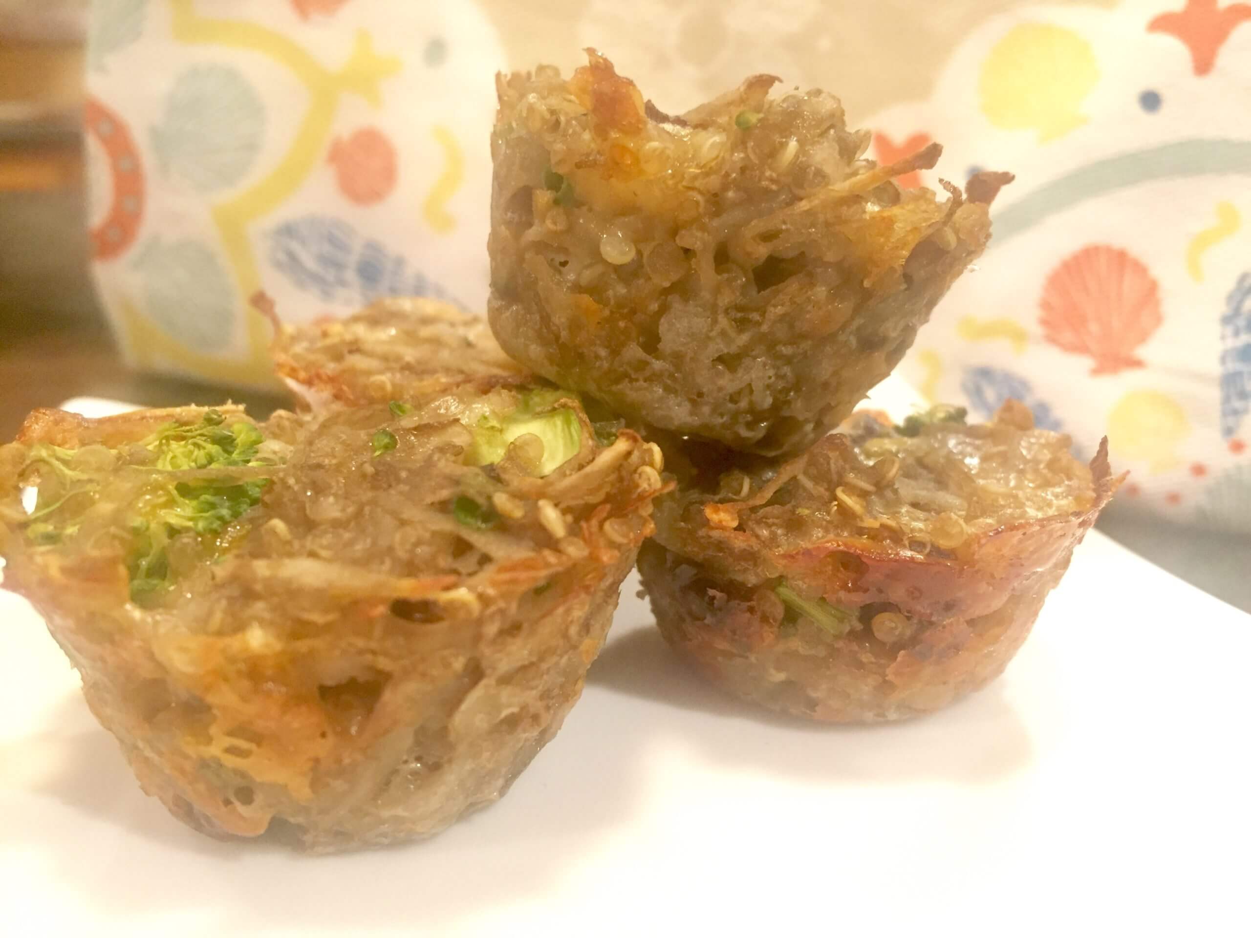 My Mini Broccoli Cheddar Potato Cups are a play on another breakfast favorite of my clients: Egg Muffin Cups.  These use shredded potato to create a crispy texture. Quinoa is added in place of flour to help bind the cups together with the help of some egg and cheddar, making them a great gluten-free option as well.  I’m not a bacon fan, but to add that salty flavor, I used smoked julienned sundried tomatoes.  Adds way less saturated fat and sodium to them mix while still giving that smokey flavor.  Once you bake the cups, allow them to cool for 5 minutes before enjoying so they have a chance to firm up.