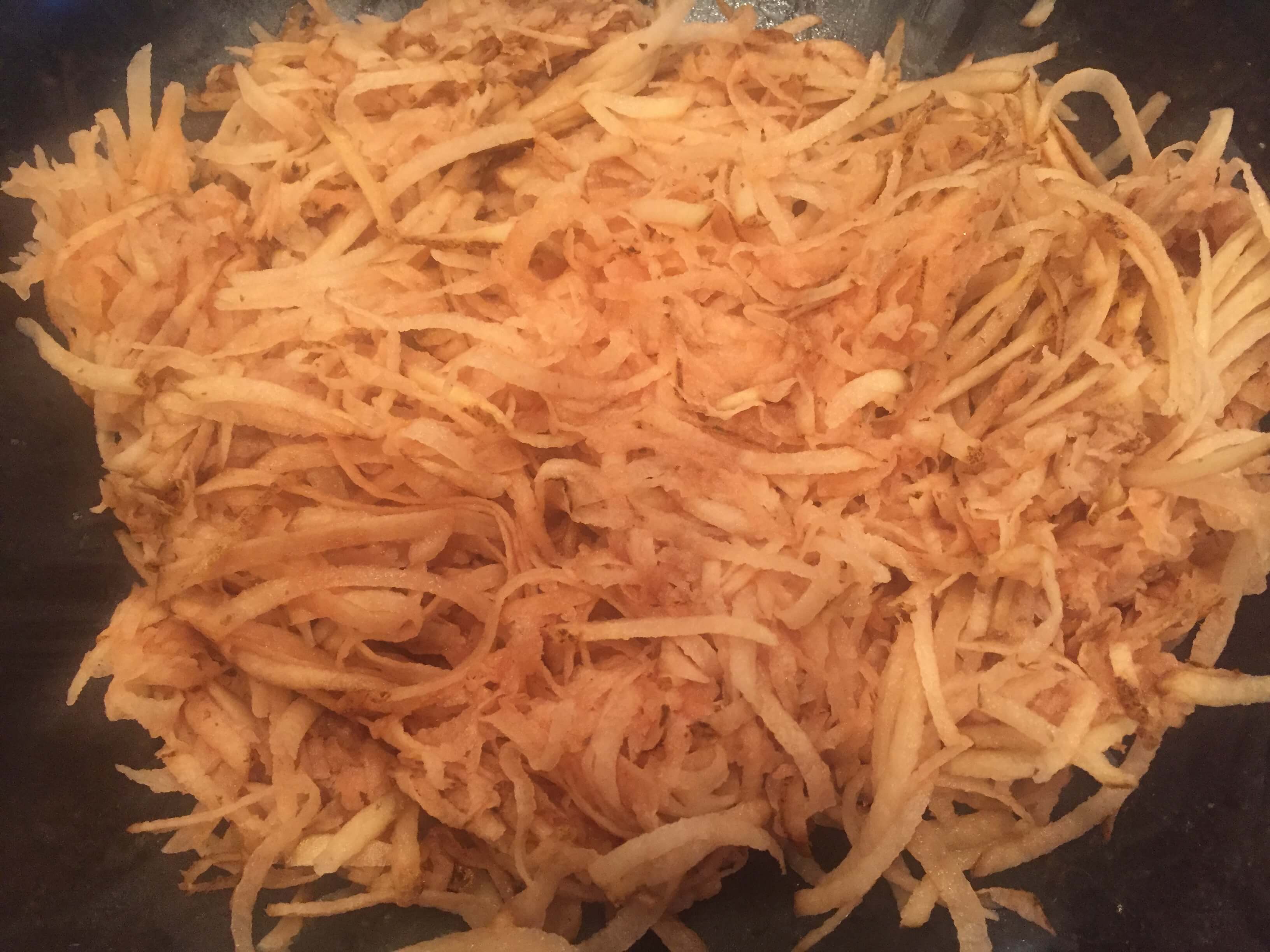 No time to shred potatoes? Buy the pre-shredded version in the frozen section of your store.